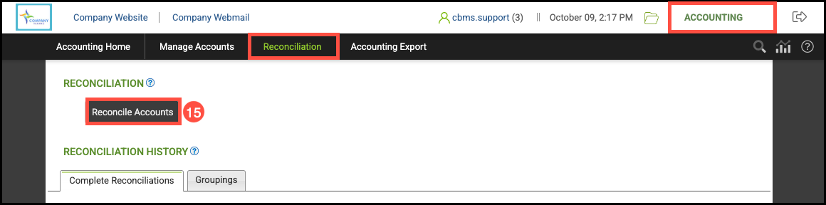 15. After saving any corrections made, return to the Reconciliation page in the Accounting Module and repeat this step until all payments are properly displayed and accounted for.