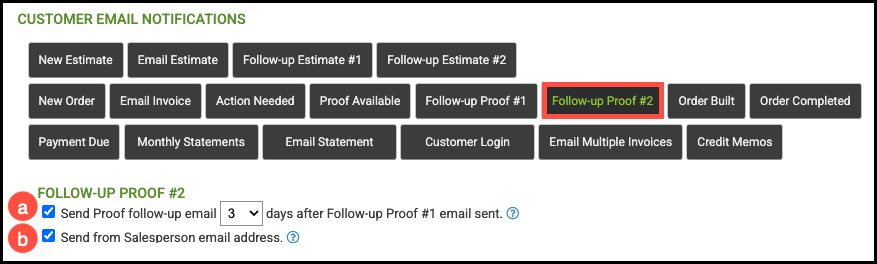 a. Check this box and use the dropdown to select the appropriate number of days you would like to wait before sending the Follow-Up Proof #2 email.