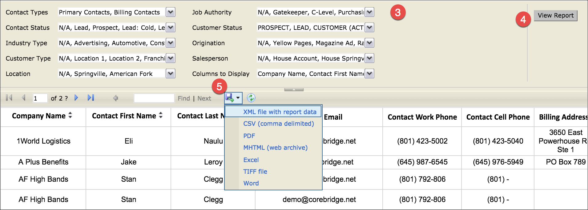 5. Once you are satisfied with the data in the report, click on the Save As icon and select the file format that your data will be exported into.