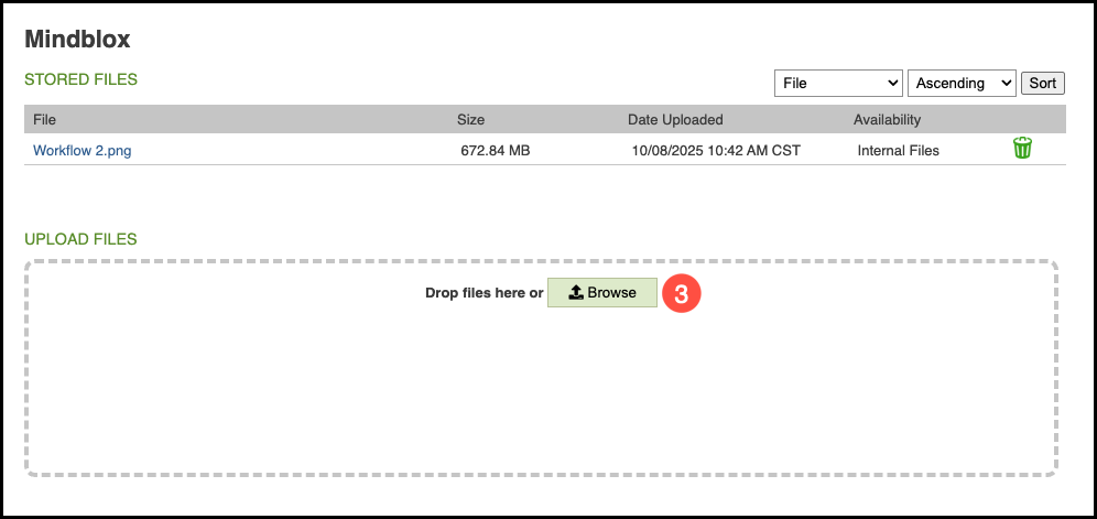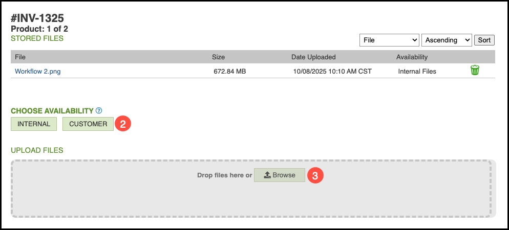 File Management (also known as Large File Management) is an optional CoreBridge feature that allows you to upload, store, and organize large files—such as high-resolution images, permits, or site photos—beyond the standard 500 MB art proof limit. This feature also enables customers to upload product-level files through the Customer Portal and access files you share with them. File permissions and accessibility are managed directly within the File Management interface. To add this feature to your system, please contact support@corebridge.net.