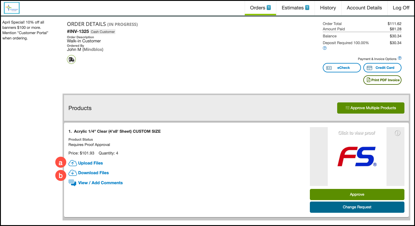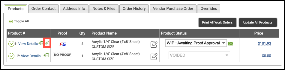 Note: Product level files are indicated by this icon found on the Order View Page.