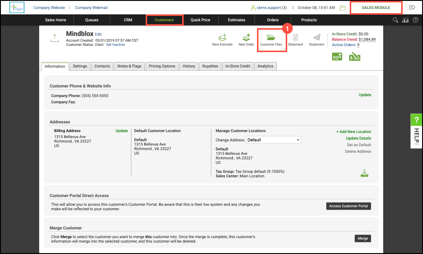 Manage Customer Level files by navigating to Sales Module / Customers and selecting the appropriate Customer.