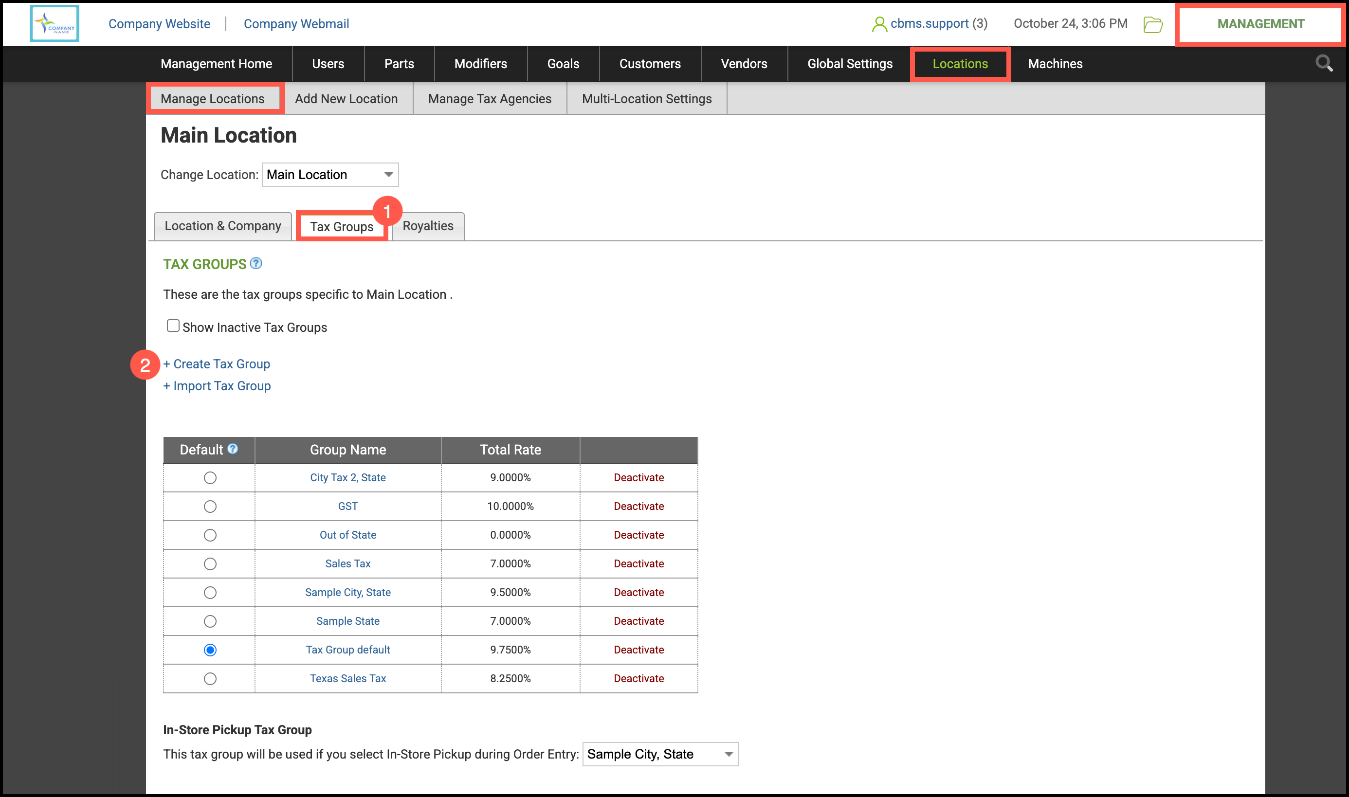 By default, the Tax Group assigned to a Customer Location will be used during Estimate and Order Entry, though it can be adjusted as needed during those processes.
