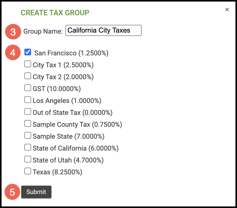 Note: Before you can create Tax Groups, you must create Tax Agencies to add to the group. For more information, please see Creating Tax Agencies.