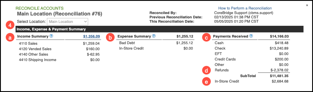 b. Expense Summary: Bad Debt payments or changes to In-Store Credit through an added or reduced transaction will be shown in the expense summary.