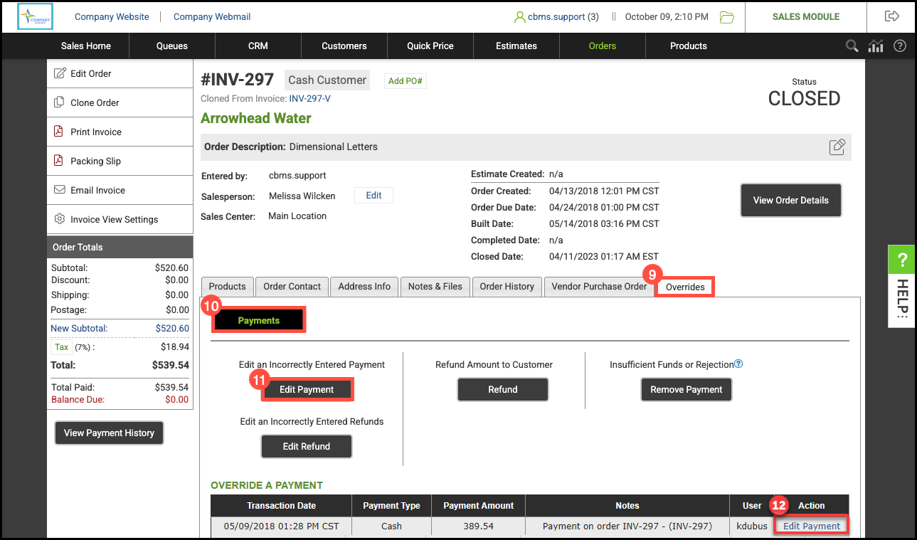 5. If an error is found, close the Reconciliation window and navigate to the Sales Module.