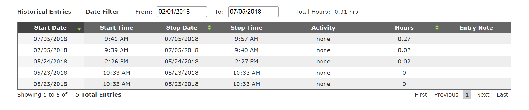You can find Historical Entries by entering a date range to search, or by sorting the list below using the column headers in the menu bar.