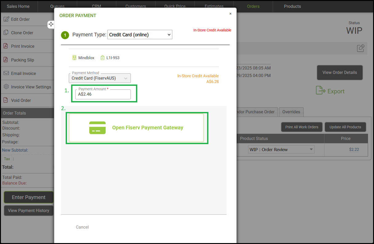 When entering a payment using Fiserv AU, you will now see a simplified process.